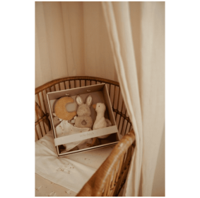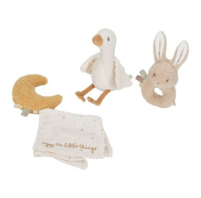 Zestaw prezentowy z kolekcji Newborn Naturals od Little Dutch to doskonały pomysł na prezent z okazji Baby Shower czy urodzin. Zestaw zawiera księżyc-przytulaczek, mini-grzechotkę króliczka oraz przytulankę gąskę. Uroczo zapakowany zestaw będzie stanowił idealny pomysł na prezent.