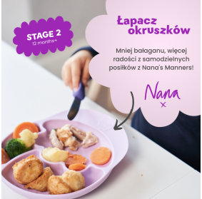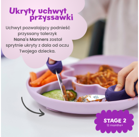 Talerz Nana's Manners został stworzony dla dzieci, które rozpoczynają ekscytującą przygodę samodzielnego jedzenia! Idealnie dopasowany do małych posiłków.